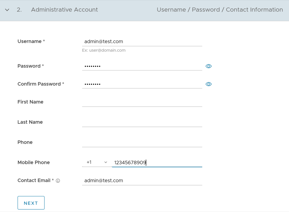 Note: The Next button is activated only when you enter all the mandatory details.