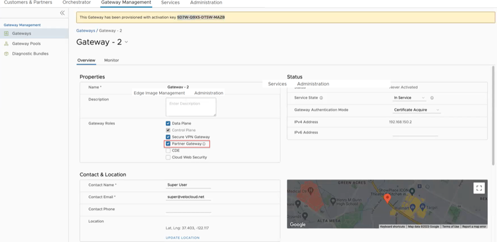 Ensure that the Gateway to be handed off is assigned with Partner Gateway Role. In the Orchestrator portal (Operator or Partner), select Gateways and select the link to an existing Gateway. In the Properties section of the selected Gateway's Overview page, you can enable the Partner Gateway role as shown in the following screenshot.