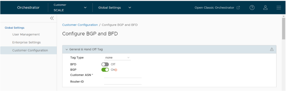 - Open the General & Hand Off Tag section and turn the BGP option to the On position.