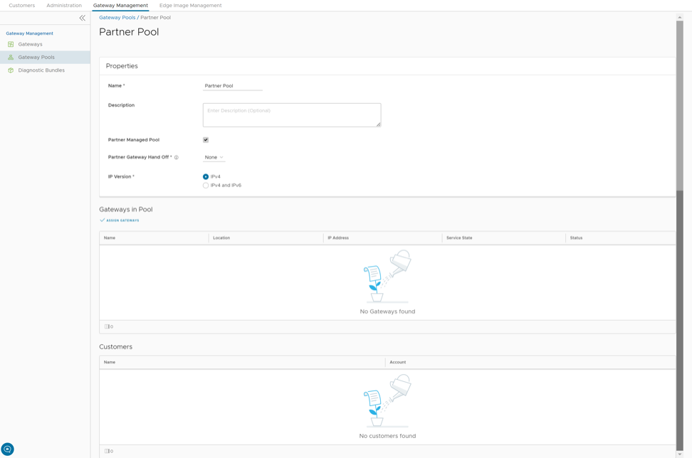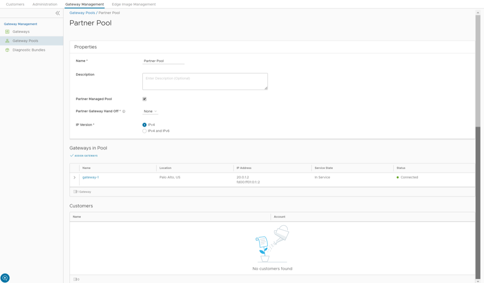 After creating a Gateway pool, you can add Gateways to the pool and associate the pool to an Enterprise Customer.