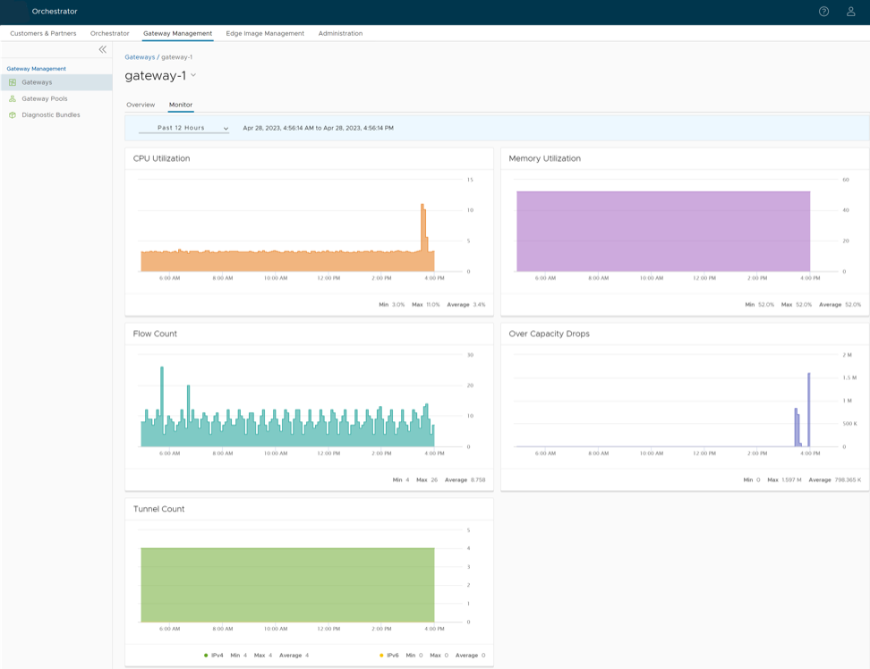 You can monitor the status and network usage data of Gateways available in the Partner portal of the Orchestrator.
