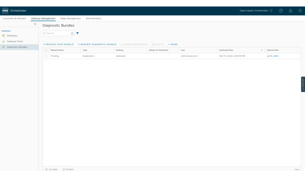 Request Diagnostic Bundles for Gateways