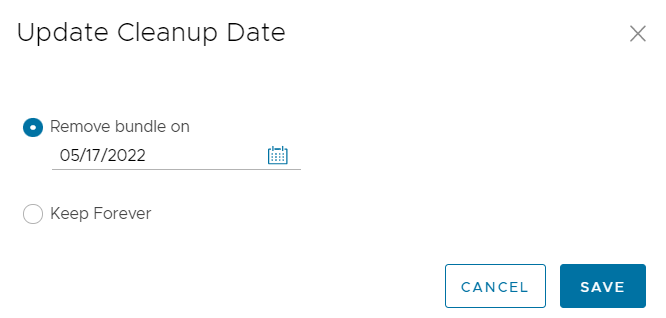 In the Update Cleanup Date dialog, choose the date on which the selected Bundle would be deleted.