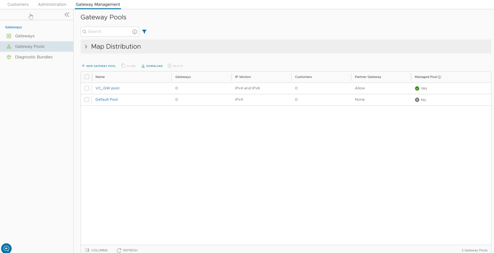 In addition to the default Gateway pool, you can create new Gateway pools and associate them with Enterprise Customers.