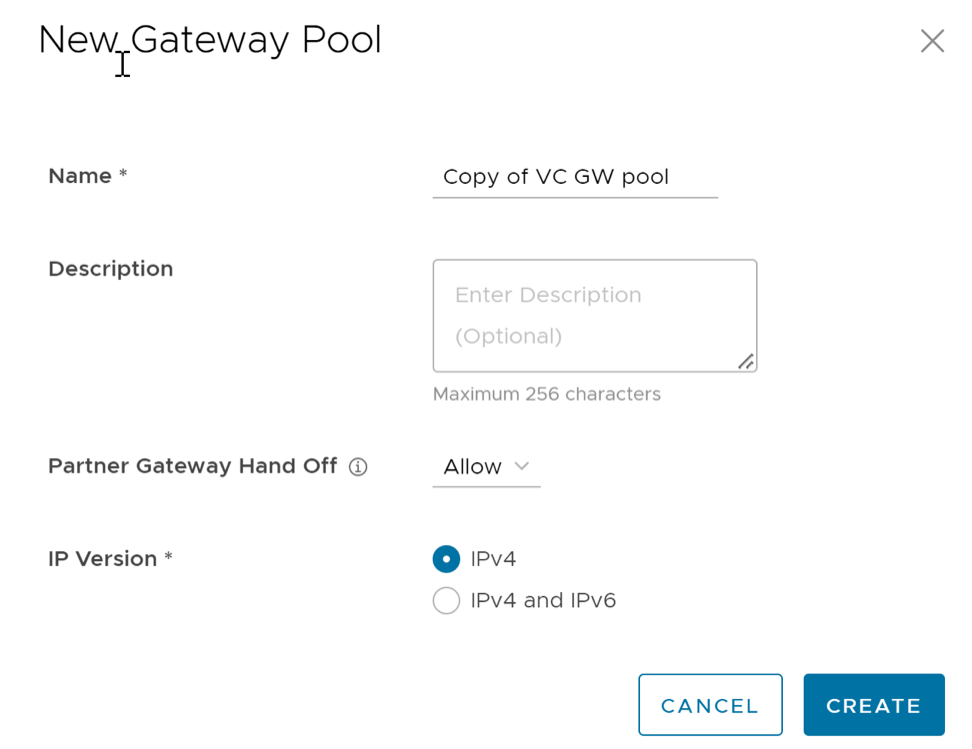 You can clone the configurations from an existing Gateway pool and create a new Gateway pool with the cloned settings.