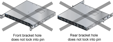 The following figure displays improper bracket mounts for two-post rack mounts.