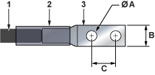 1 Insulated wire 3 Lug (all three terminals) B 1/2"