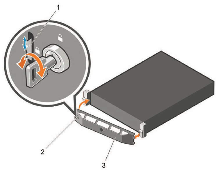 - Unhook the right end of the bezel and pull the bezel away from the system.