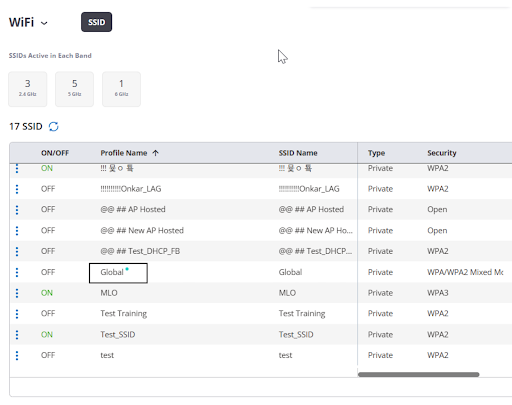 - SSID Profile Name: Typically, this is the same as the SSID Name. It is primarily meant to distinguish between duplicate SSIDs. So, duplicate SSIDs at the same location have different profile names. For example, if you duplicate "ABC Corp" at the same location, then the new SSID name will be "ABC Corp" but its profile name will be "Copy of ABC Corp(1)". You can modify the profile name.