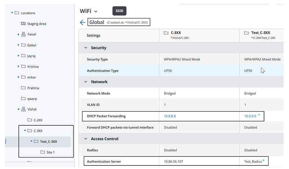 Note: If you copy the SSID at the current location, the SSID Profile Name is different for the copied copy. For example, if you copy "ABC Corp" at the same location, then the new SSID name will be "ABC Corp" but its profile name will be "Copy of ABC Corp(1)".