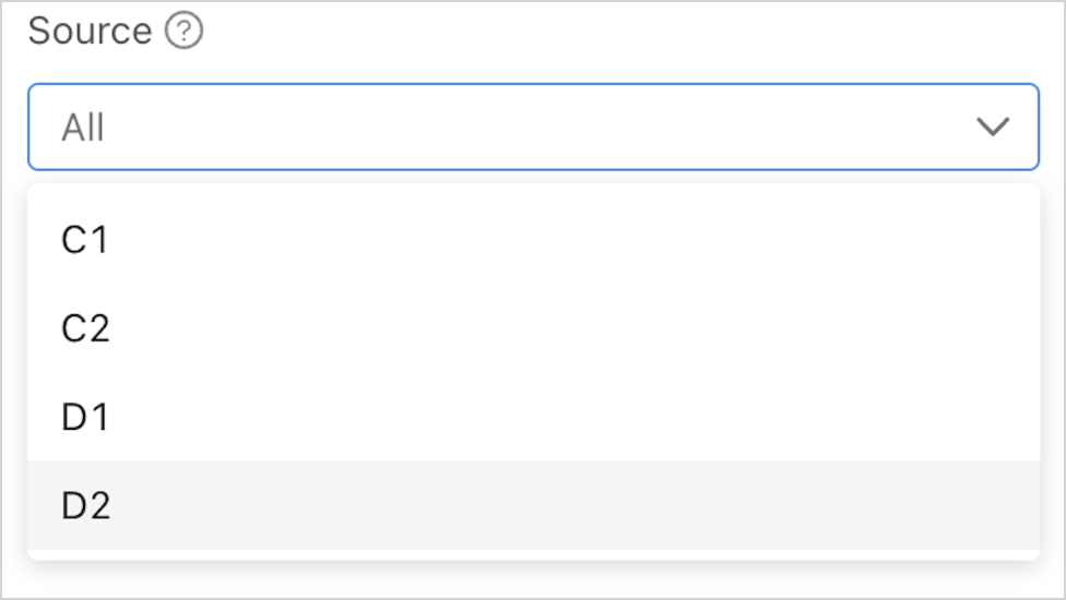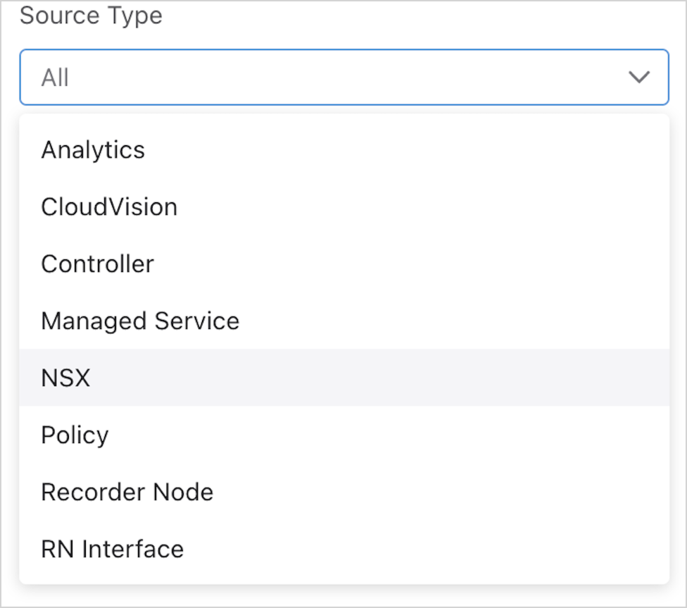 - Source Type: Use the drop-down menu to select a specific type of source (e.g., switch, policy, etc.).
