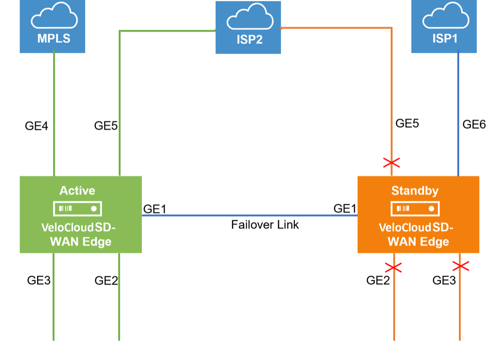 - The Standby SD-WAN Edge does not interfere with any traffic by blocking all of its ports except the failover link (L1 port).