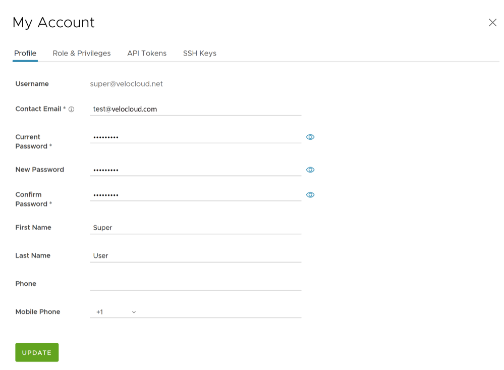 • Operator Super users can manage SSH keys of other Operator users, Partner users, and Enterprise users, if the Partner user and Enterprise user have delegated user permissions to the Operator.