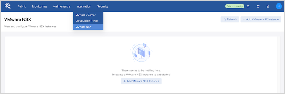Select Add VMware NSX Instance to create a new NSX integration instance.