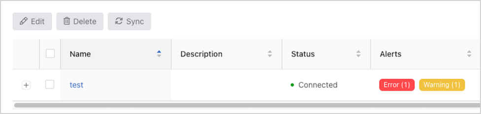 If there are any warnings or errors with the NSX integration instance, select the tag in the Alerts column to see more details.