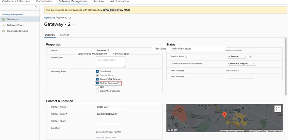 Ensure that the Gateway to be handed off is assigned with Partner Gateway role. In the Orchestrator portal (Operator or Partner), select Gateways and select the link to an existing Gateway. In the Properties section of the selected Gateway's Overview page, you can enable the Partner Gateway role as shown in the following screenshot: