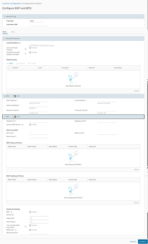 MD5 Auth Select the check box to activate BGP MD5 authentication. This option is used in a legacy network or federal network, and is used as a security guard for BGP peering.