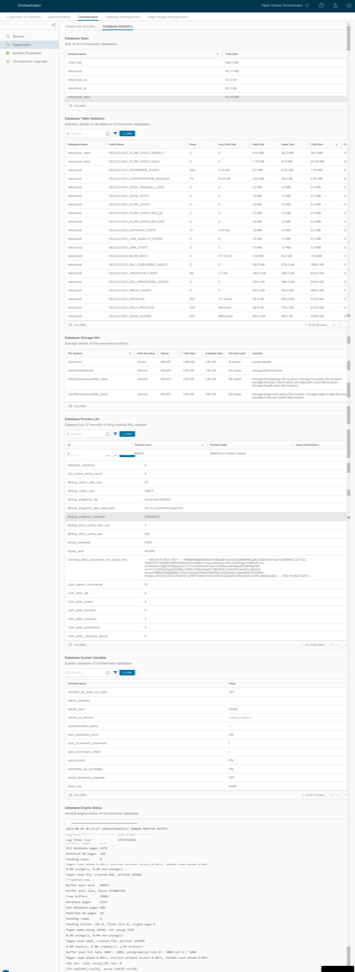 | Database Table Statistics | Statistical details of all tables in the Orchestrator database. |