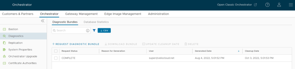 - Diagnostic Bundles: Request and download a diagnostic bundle.