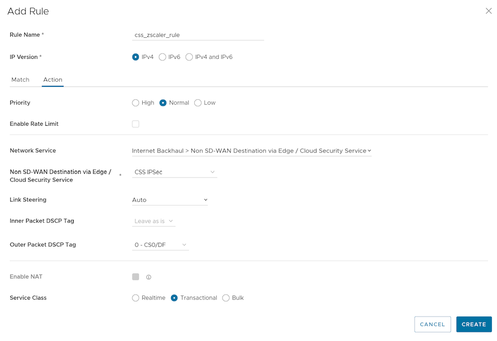 - Define the rule with cloud security service associated with the Edge.