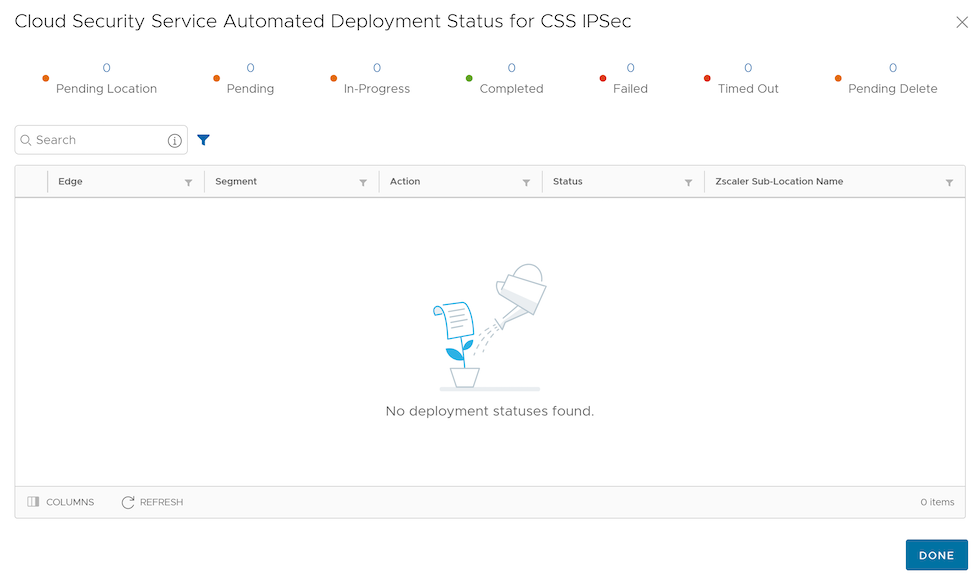 - Select the Cloud Security Service Sites tab to view all the CSS configured for the Enterprise along with the following configuration details.