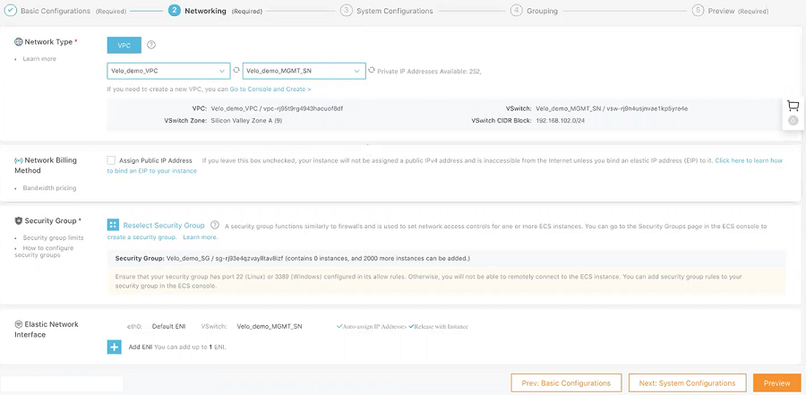 - Add an Elastic Network Interface (ENI). You can skip this step if the selected instance type does not support ENI.